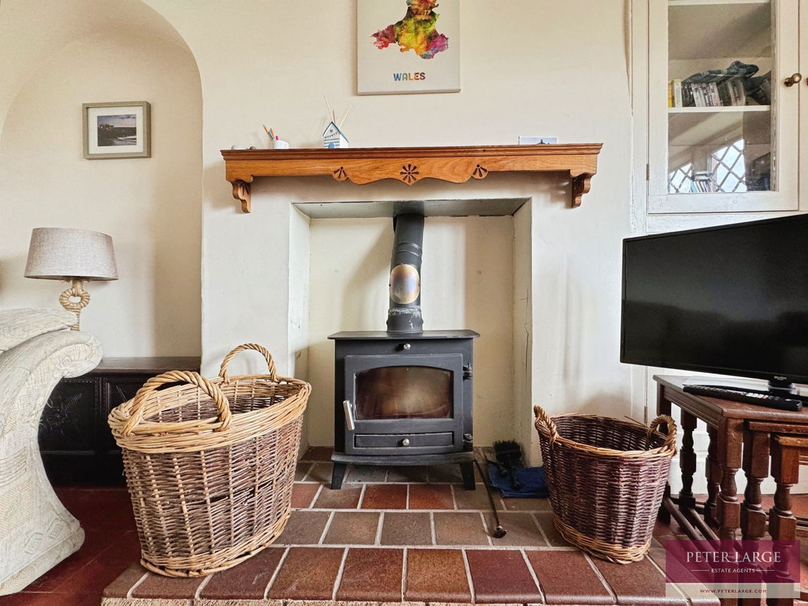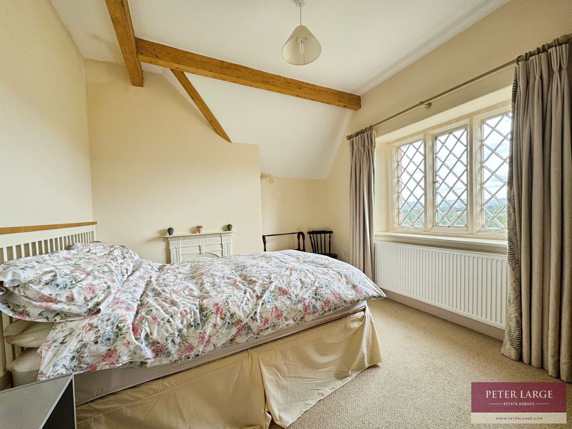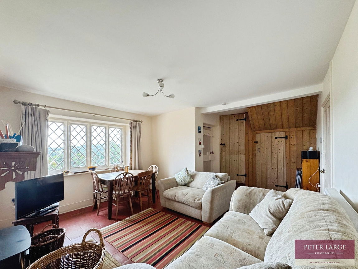 With original cast iron fireplace, radiator, beam ceiling and original diamond lattice window with stunning panoramic countryside views.