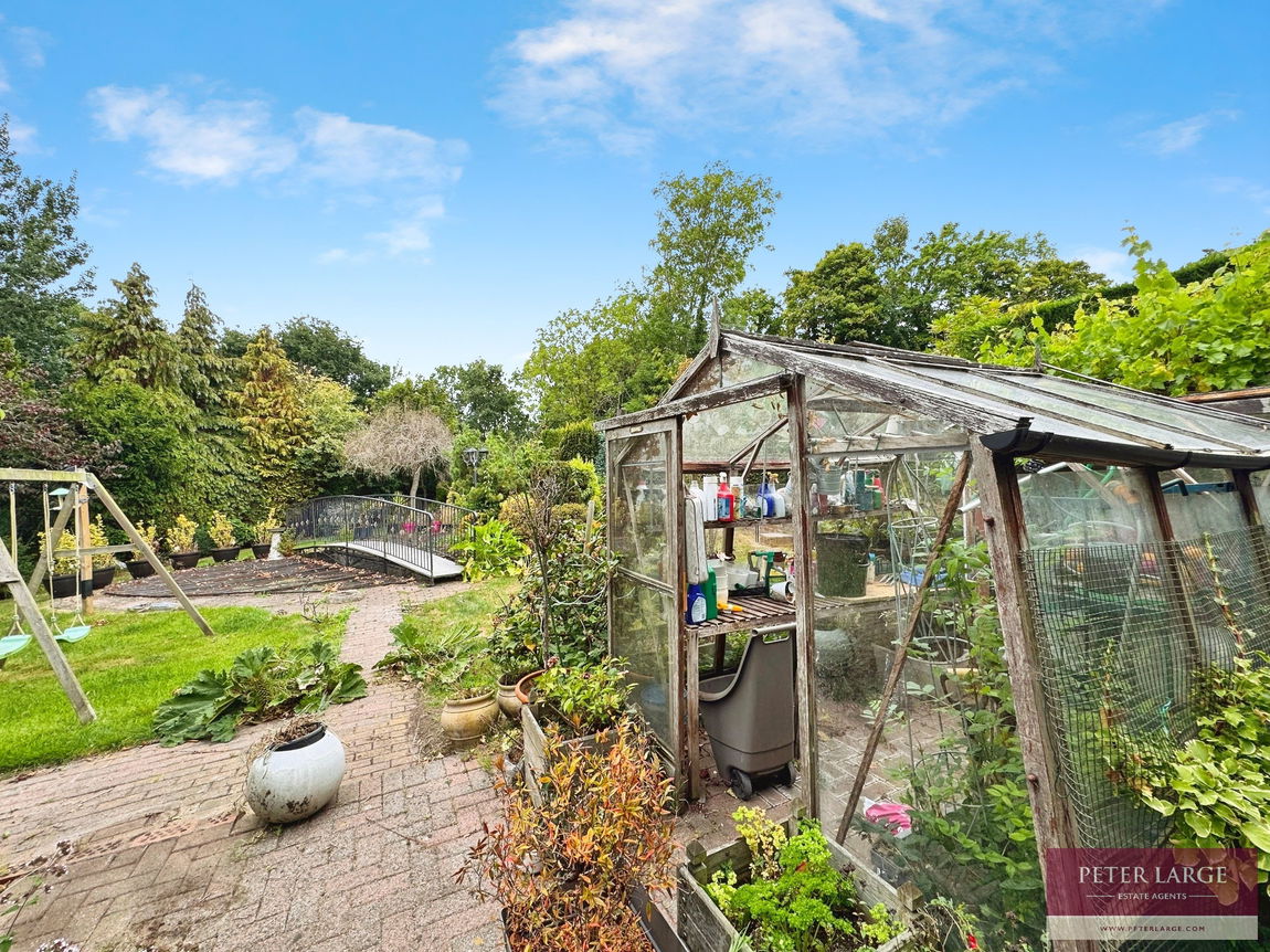 Decorative brick paved driveway to the double garage. A further decorative brick paved driveway to the side of the property with outside tap and bin storage. A pedestrian wrought iron gate gives access to the public pathway (which they have donated to the local council) and the approximately one acre of woodlands, leading to the river which is half owned with fishing rights.  The front garden is landscaped for ease of maintenance with a variety of established plants and shrubs. Timber gate to the right side lead to the rear garden. The beautiful landscaped rear garden is mainly laid to lawn, borders containing a plethora of established plants, fruit bearing trees and shrubs.  Large outbuilding with timber windows, Greenhouse, ample outside taps, patio area with raised pond.  Large Koi Carp pond with small water feature, decorative bridge and 'Nexus Evolution Aqua' water system.