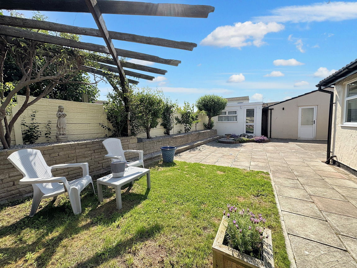 This surprisingly spacious detached bungalow is within a popular residential estate, located in the coastal area of Belgrano. Offering a large lounge, separate dining room, extensive kitchen/diner, sun room, two double bedrooms and wet room. The level plot also incorporates a single garage with useful rear workshop/office plus a craft room with uPVC cladding. The gardens are easy to maintain and the rear courtyard is particularly private, being fully enclosed. Regular bus services operate nearby into the towns of Abergele and Rhyl and the beach and promenade at nearby Pensarn is within walking distance.