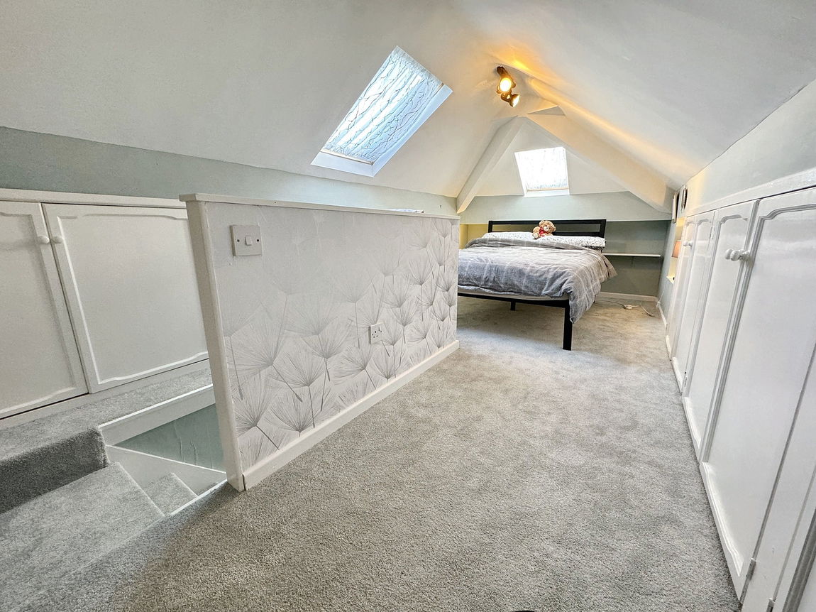 Currently used as a bedroom, with plenty of 'under the eaves' storage behind cupboard doors, sloping ceilings, radiator, power points and two Velux windows.