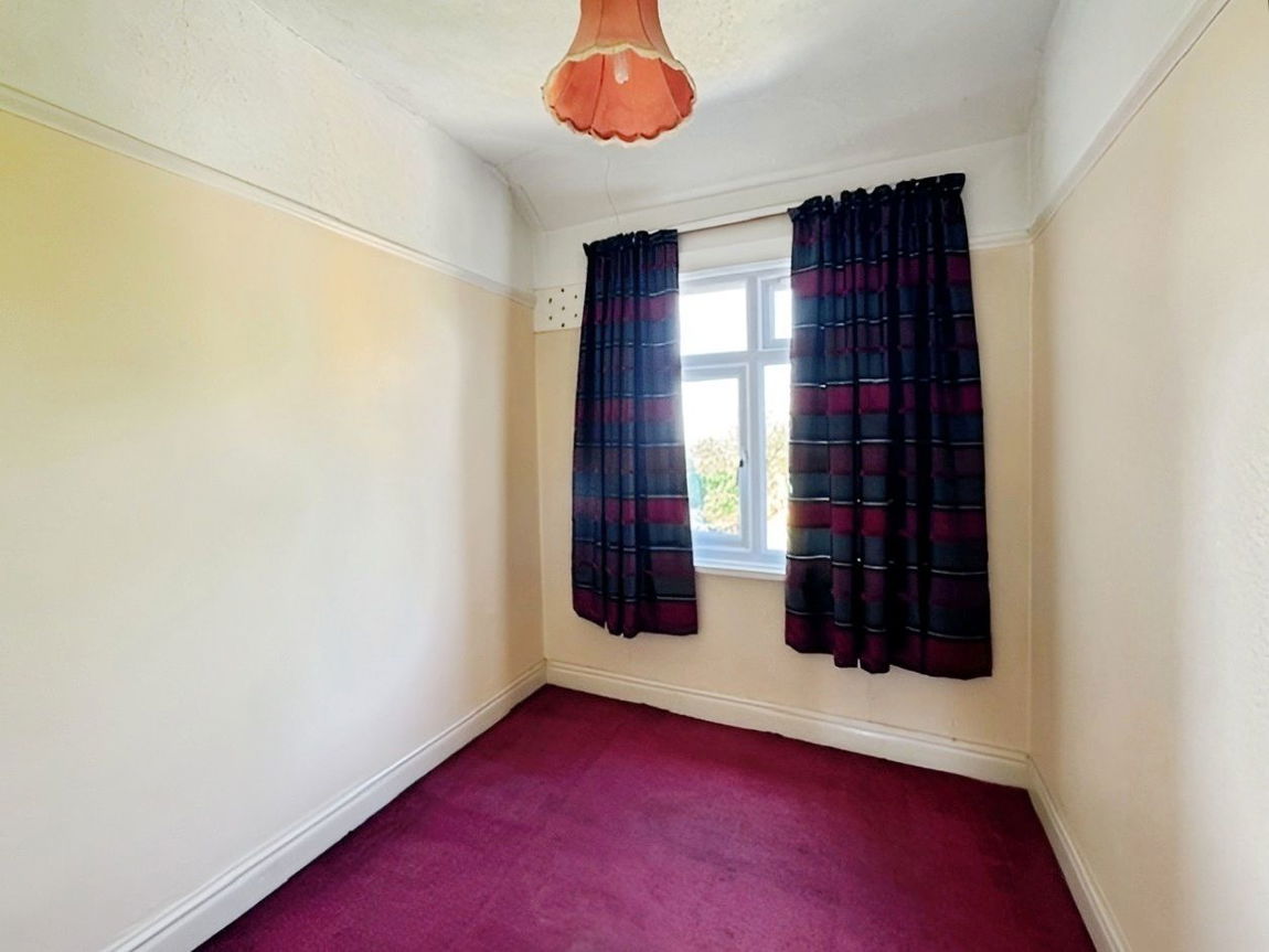 Having a range of fitted wardrobes with mirror fronted sliding doors, double glazed window enjoying an outlook to the front elevation, electric storage heater and picture rail.