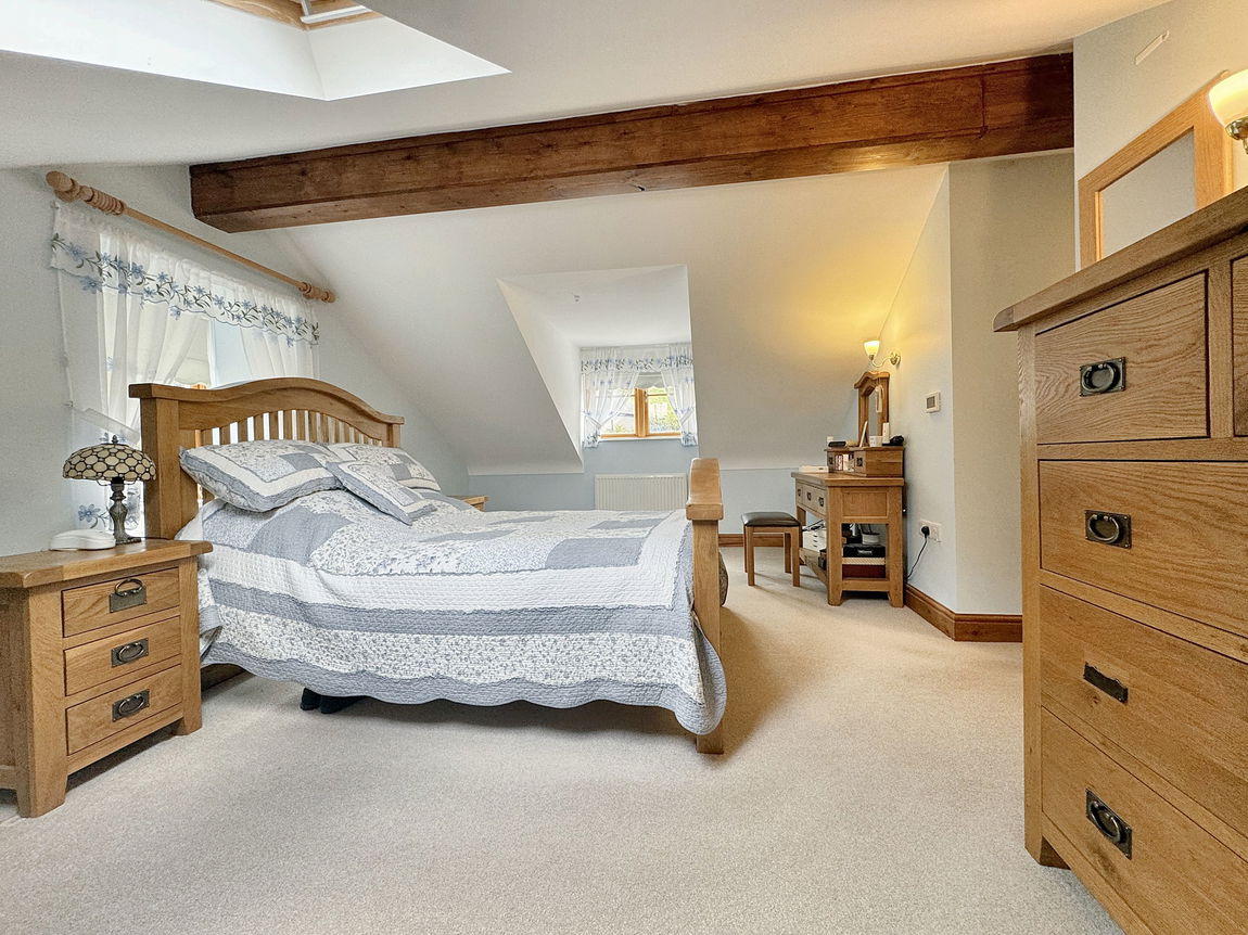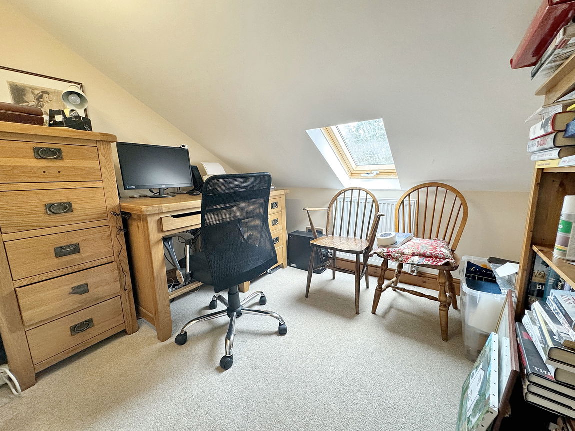 The second double bedroom with window to front, Velux window, radiator, power points and wall lights.
