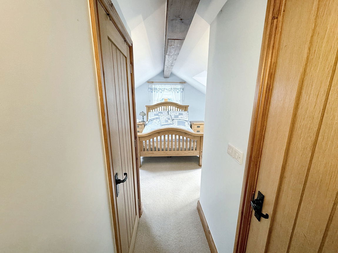 Door opens to master suite comprising large double bedroom, separate dressing room and ensuite. The master bedroom has windows to front and side, Velux window, two radiators, wall light and power points. Dressing room has Velux window and wall light. Spacious ensuite facility is fitted with a four piece suite comprising low flush wc, pedestal wash hand basin, shower cubicle and panel bath. Fully tiled walls, ceiling spotlights, chrome 'ladder style' radiator, obscure glazed window and radiator.