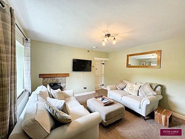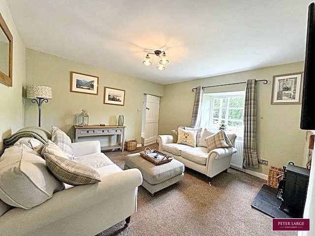 With feature stone fireplace with log burning stove, power points, radiator and single glazed window giving aspect over the front.