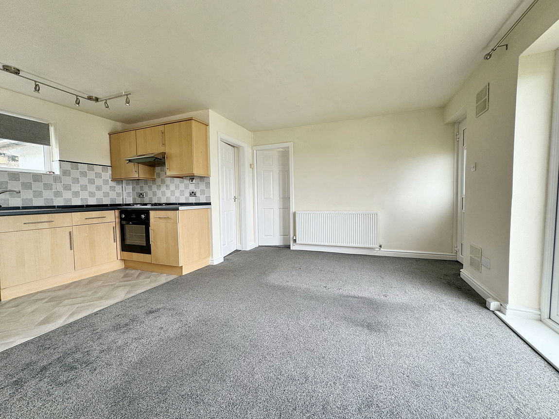 Open plan living/dinning/kitchen area. With uPVC door leading out onto the rear garden. Fitted with radiator, power points, lighting and TV aerial point. The kitchen area is fitted with a range of wall and base cupboards with worktop surfaces over. Part tiled walls, power points, hob and oven with extractor fan over. Space for a washing machine and space for a fridge/freezer. Stainless steel sink and drainer with mixer tap.