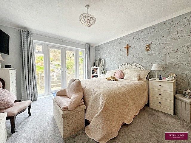 Having a range of built-in wardrobes with hanging rail and shelving, radiator, coved ceiling, power points and uPVC double glazed French doors with glazed side panels enjoying an outlook and access to the rear garden.