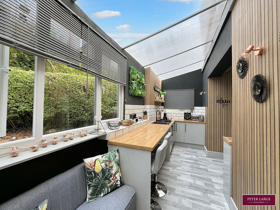 With double glazed windows to the front and side elevations, laminate wood effect flooring, timber and glazed door into:-