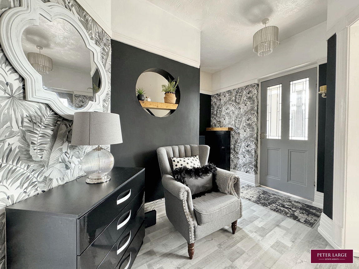 With two double panelled radiators, small meter cupboard, obscure glazed window and a picture rail.