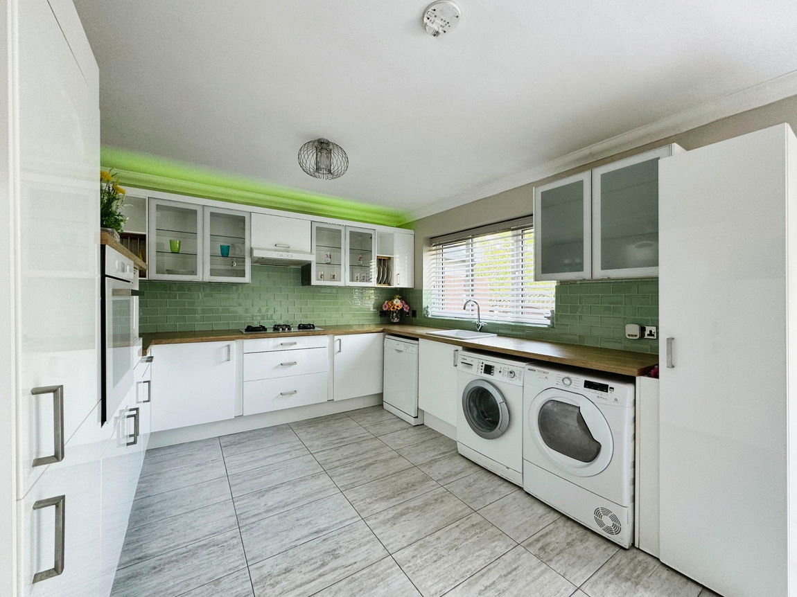 Lounge area having radiator, power points, T.V aerial point, access to roof space and uPVC double glazed window overlooking the front.  Kitchen having a range of high gloss fitted units to include wall cabinets with lighting beneath, granite worktop surface over with drawer and base cupboards beneath, integrated dishwasher, space and plumbing for automatic washing machine, space for tall standing fridge/freezer, part tiled walls, integrated wine rack, tall standing larder unit, sink with mixer tap over and uPVC double glazed window overlooking the side.