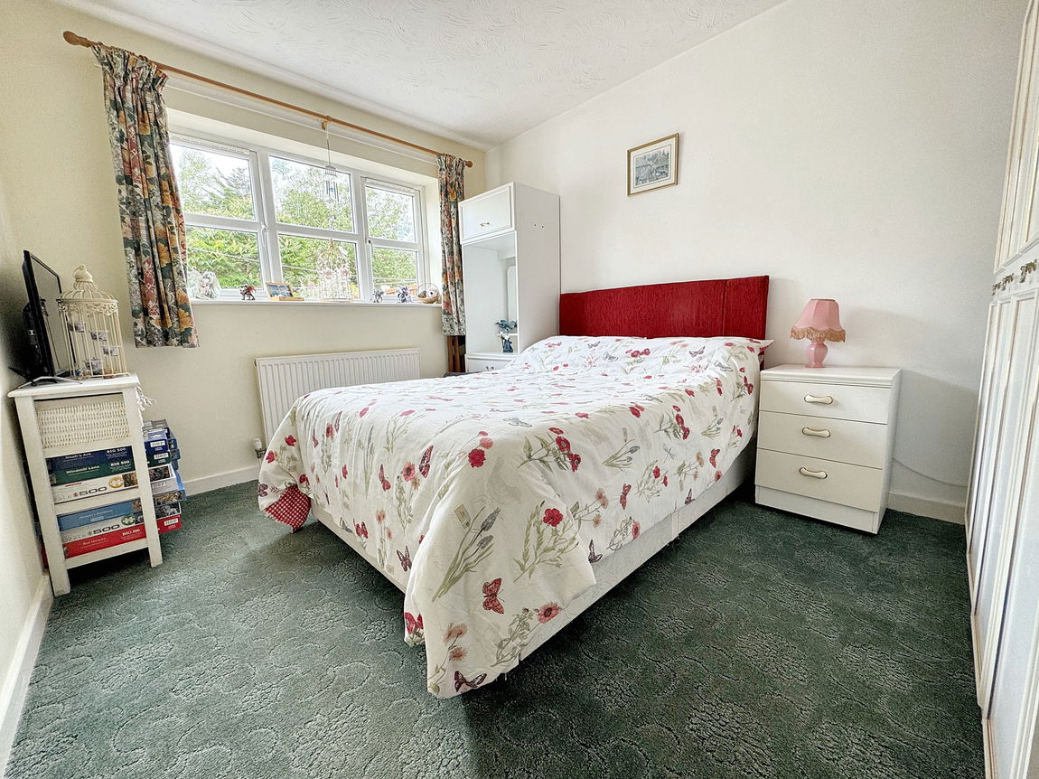 Stepping out to the fully enclosed garden from bedroom one, with a patio area, a step up to the grass a gate to the front either side and the garage. The front of the property consists of a long driveway and a grass area.